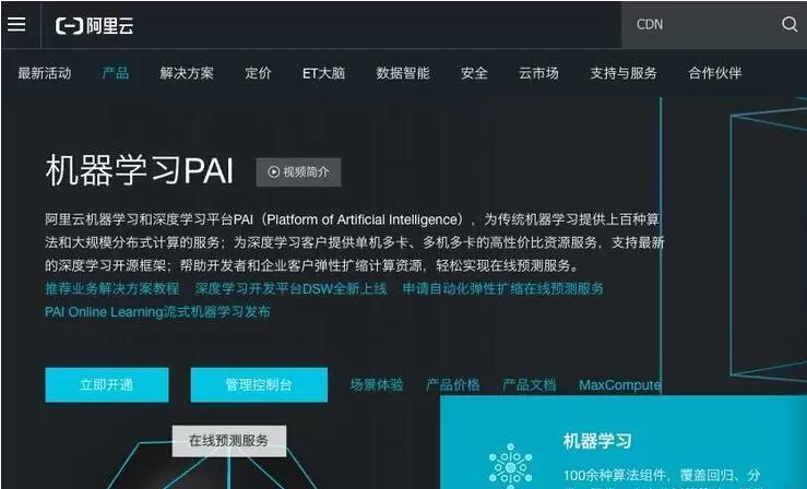 阿里云机器学习平台是构建在阿里云 MaxCompute(原 ODPS)计算平台之上,集数据处理、建模、离线预测、在线预测为一体的机器学习平台。阿里云机器学习封装了阿里巴巴集团内成熟的算法,向机器学习用户提供了更简易的操作体验。