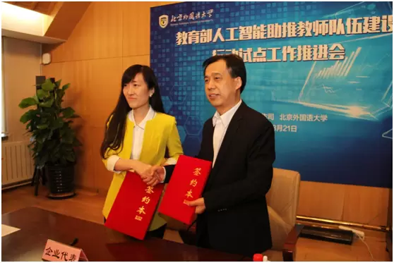 2019年3月21日,北京外国语大学与腾讯云在北京外国语大学东校区举行合作签约仪式,未来双方将共同做好人工智能助推教师队伍建设行动试点工作,积极探索新时代教师队伍改革新路径和教师队伍建设新方法。北京外国语大学副校长孙有中,腾讯智慧教育总经理潘鸿雁出席并签署合作协议。