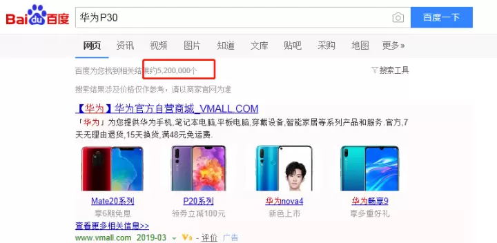 在一系列的预热动作之下,即使尚未发布,华为P30依然在全网提前掀起了一股关注热潮,仅在百度搜索引擎,就已经有了520万的相关检索结果,足见用户对华为P30的期待。