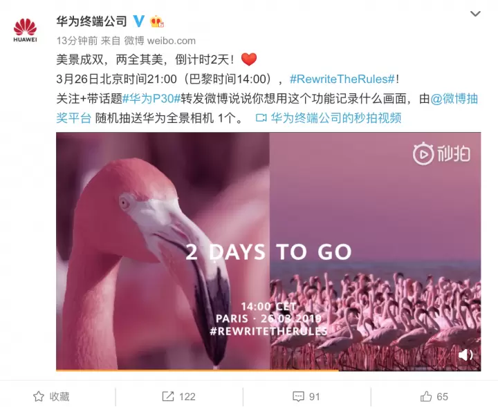 现在,距离华为P30的海外发布会仅剩下2天时间,华为P30的面目越来越清晰,攒足了期待的网友们马上就可以一睹P30真容,3月26日北京时间21点,我们一起见惊喜。