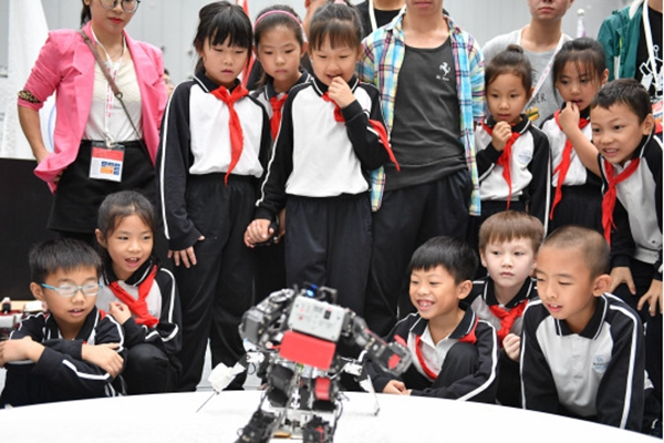 2018年10月,在第二十届中国机器人及人工智能大赛上,小观众被进行击剑比赛的仿人机器人吸引。