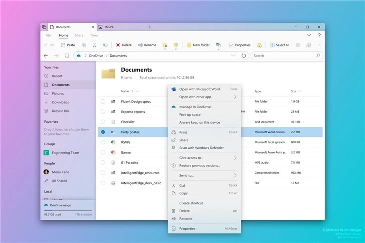 MSPU认为,新文件资源管理器很可能会用上流畅设计。不过,微软还没有正式公布关于传言中新文件管理器的消息。你可以通过微软MVP、设计师Michael West设计的概念图,提前触碰它的未来。