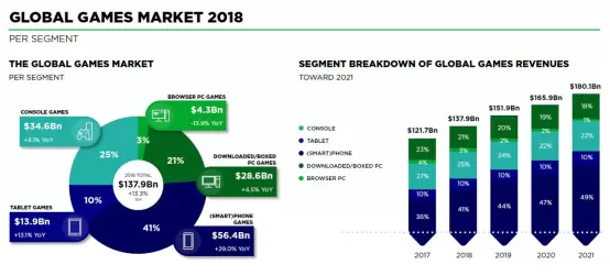 数据来源:Newzoo《2018年度全球游戏市场报告》