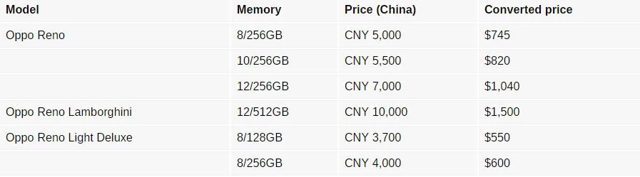 至于价格,Reno高端型号起售价或为5000元、中端机型为3700元,另外还有一款售价达万元的兰博基尼限量版。如果曝光价格是真实的,那么OPPO Reno高端型号的性价比显然超过华为P30 Pro,并且性能更强。