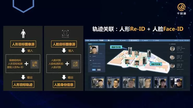 2.布控识别存在盲区:进入园区后,很多地方一方面没有摄像头,另外即便有摄像头也仅可以实现把人检测出来,或者是用Re-ID把人在不同的系统里进行关联,但并不能建档,所以无法知道这个人是谁。对此,我们把Re-ID和Face-ID融合起来,除了从不同的系统里拿到这个人的样貌和外形信息之外,我们也把他的身份信息复制进去。