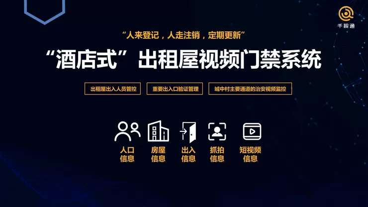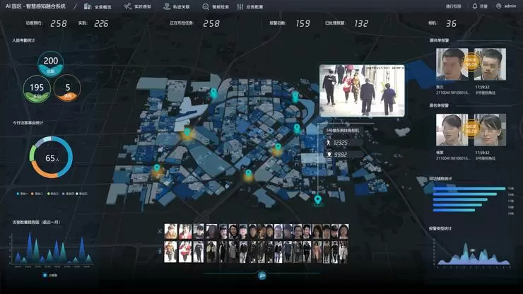 小区里的人在什么地方,做什么事情系统都可以知道,他原有的门禁,也知道有什么人在里面,所有门禁采集的资料会送到后台中央来处理,再加上一些摄像头做的Re-ID和Face-ID的融合,基本可以实现一人一档。它首先可以统计人口信息,然后是房屋信息,知道房子里面有什么人住,现在有什么人在里面。然后是出入信息,我们可以知道处于这个门禁的哪个位置,他在社区里面跑,通过多个摄像头融合,系统也可以把他的位置找出来。