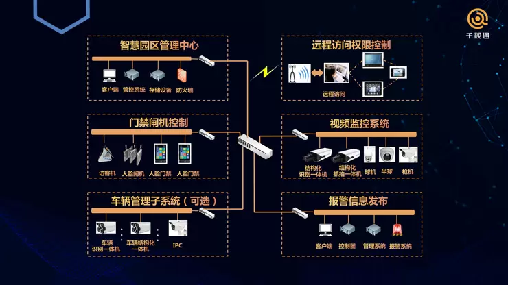 远程访问权限控制:这个模块很重要,园区如果有人过来访问,可以预先在网上登记,登记之后,进入这个园区即可。后台授权也有一些功能,管理员可以根据你的身份,自动设置你哪些地方可去,哪些地方不能出去,以及获取访问时间等。