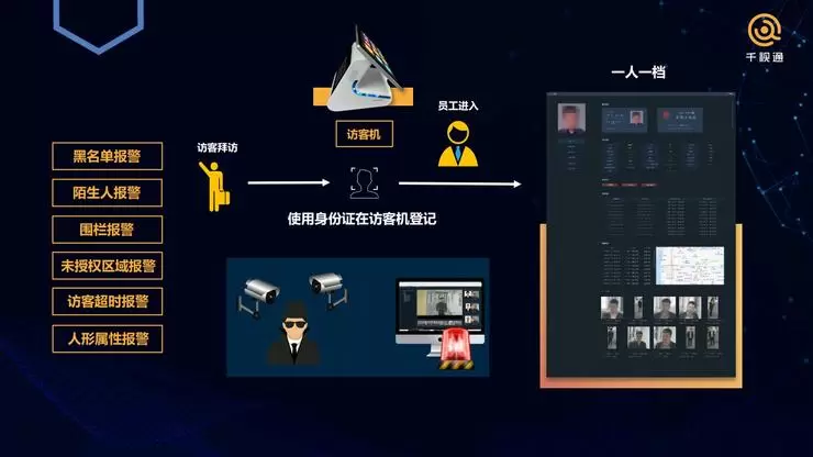 我们前端是允许普通的IPC连接到我们的盒子,或者是在后台的机器里做分析,还可以买我们设计的摄像头,千视通已经有一些算法,也可以提供一些标本配备,比如与闸机或者是访客机,以及加上人脸终端去提升性能。
