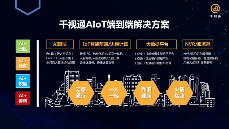 千视通的AIoT方案可以用在什么场景呢?园区、社区、校园还有零售。今天我主要讲前三个,零售的技术逻辑与上述三者也较为相似。