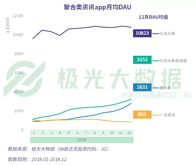 根据极光大数据的统计结果,2018年12月,趣头条app月均DAU达到2831万,约为2018年1月月均DAU的3倍。