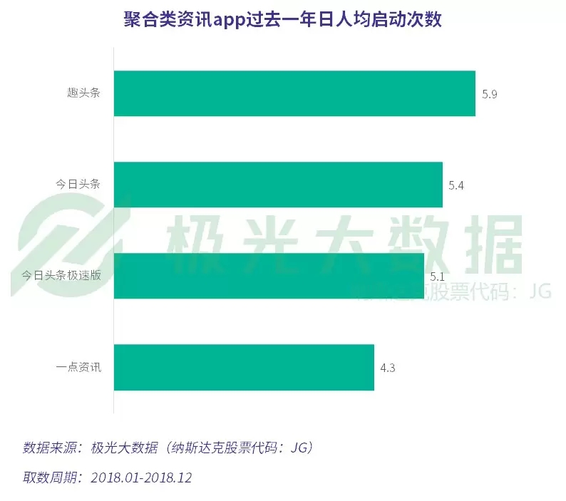 2018年,趣头条用户日人均打开此app近6次,领先其它聚合类资讯app
