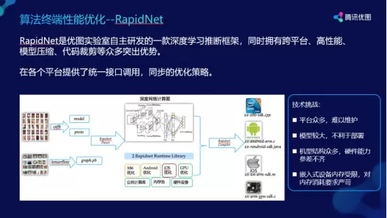为解决维护成本高、网络不断加深、用户规模庞大等问题,腾讯优图在NCNN 框架的基础上推出拥有跨平台、高性能、模型压缩、代码裁剪的 RapidNet 深度学习推断框架。它可以在各个平台上提供统一的接口,在性能优化上更加极致。但由于CPU/GPU 交互延迟高,参数传输、数据拷贝耗时过多;网络中部分层运算量小,GPU 并行度不足;多路处理 CPU 性能不足,负载过大等原因,异构多核 CPU/GPU 加速技术成为了 RapidNet 主要的核心特性之一。其深度融合了基于 AMD 平台的 OpenCL GPU 并行计算加速技术和基于 IOS 平台的 Metal 加速技术,完美解决以上问题。