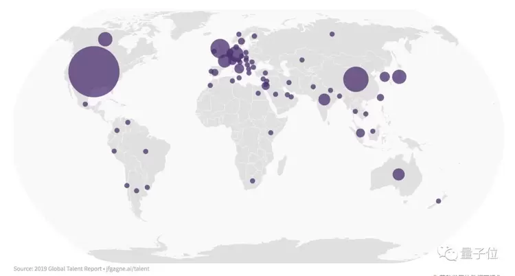 可以看出,人才的虹吸效应还是很明显,基本都奔几个强国去了,前五名的美中英德加包揽了72%的AI人才,而前18名的的国家则包揽了94%的AI人才。