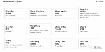 陈林手下还有12人,从负责产品战略的訾婧鑫、头条业务和小游戏的张前川、皮皮虾的张心皓等均要向陈林汇报。