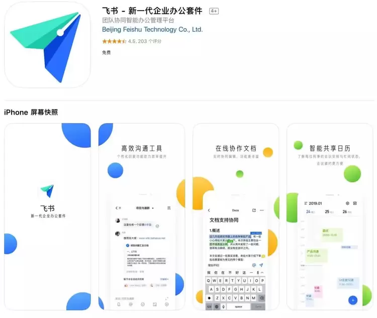 Lark 国内版「飞书」的应用商店截图〡App Store