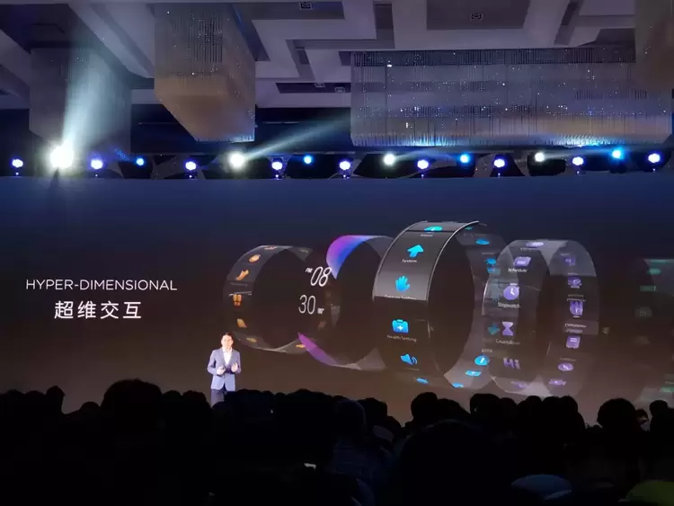 现场倪飞还演示了一些花里胡哨的功能,比如凌空手势和弹幕功能,不过这个弹幕功能在系统里的名字是跑马灯……