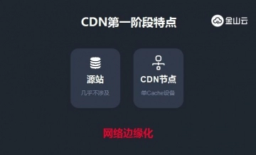 第一阶段特点是网络边缘化。早期互联网用户直接访问源站,给源站带来巨大压力,导致互联网链路阻塞。CDN可将内容缓存到网络边缘,用户能够更快访问离他们最近的网络节点,同时可降低源站服务器负载,减轻互联网的流量负担。