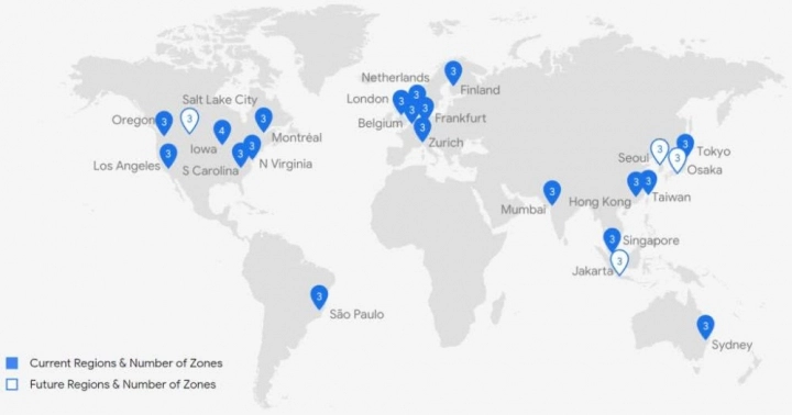 谷歌称其云服务将于2020年在全球23个地区推出,包括芬兰、孟买、悉尼和香港。未来几周内日本大阪将在上线,明年初将在印度尼西亚雅加达上线。谷歌还表示,2020年将在韩国首尔和犹他州的盐湖城增加云区。
