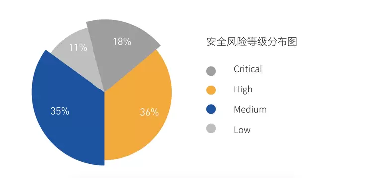 从安全威胁的程度来看,严重以及高危的安全风险超过了一半的比例。在时间、精力有限的情况下,严重和高危的安全风险应该优先被处理。