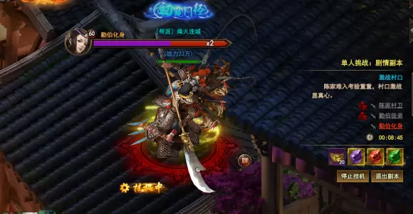 勤伯化身出来了,完全是戏台上一副老生的造型,无论是生命力、攻击力都远比之前的两个人要高出太多。一场鏖战不可避免,就硬着头皮上吧。看着右侧紫色、红色、绿色三种宝石,以及绑定的20元宝,是否又有了更多的期待和勇气呢?傲天太极崛起剧情副本,村口激战已经顺利完成,集市大战即将拉开帷幕,挑战一重接着一重!