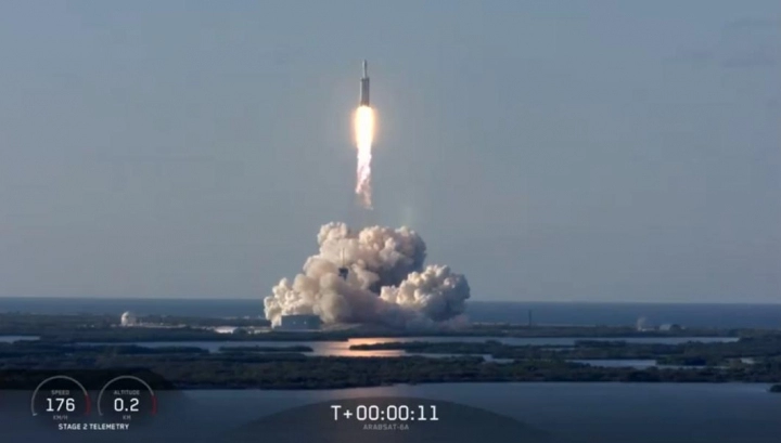 北京时间4月12日6时35分,SpaceX公司的重型猎鹰(Falcon Heavy)火箭从美国佛罗里达州“肯尼迪航天中心”发射升空,本次发射搭载的是Arabsat公司的一颗通信卫星,该卫星重约6吨,用来给中东和北非地区提供电视、网络和手机信号服务。