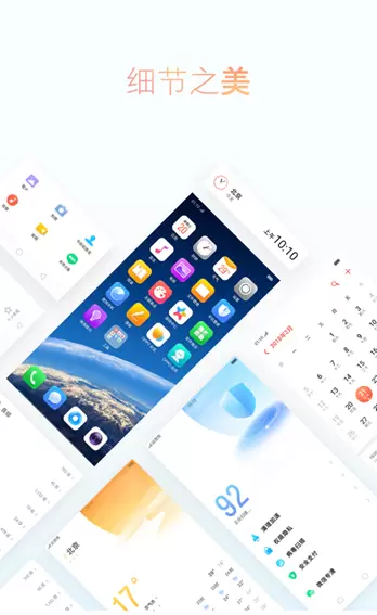 当我们看到一个事物,往往首先就是被颜色所吸引。ColorOS 5.0对全套系统图标进行了色彩重绘,大量使用橙、紫、蓝、绿等鲜明的亮色,打造出温暖、有光感的视觉感受。