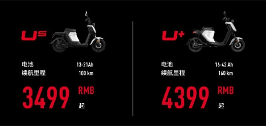 昨日晚间(4月12日),小牛发布两款国标电动车,US和U+,除了外形上的些许区别,US和U+最大的不同是续航能力,US为100公里,U+则达到了160公里。定价方面,前者3499元,后者4399元,已经在官网开启1元预约,22日逐步在线下门店交付。
