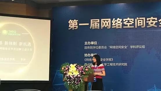 5月10日—11日,第一届网络空间安全学科发展与建设研讨会在陕西西安举行。本次大会由国务院学位委员会“网络空间安全”学科评议组主办,西安电子科技大学承办,国内知名安全厂商360等共同支持。会上,360网络安全学院李洋发表了主题为“新思路,新体制,新机遇,助力高校网络安全人才培养—探索网络安全人才培养”的演讲。