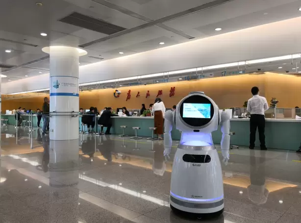 位于深圳市福田区的行政服务大厅,则引入了行政服务小助手克鲁泽。市民进入行政服务大厅,有很多常见业务需要咨询现场工作人员。这时候,商用服务机器人克鲁泽积极发挥岗位职责,有效地提升了行政服务大厅的工作效率。