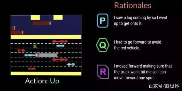 佐治亚理工学院先是收集了大量的人类样本,让人类实验员玩一遍游戏,然后再回溯整个游戏过程,解释出自己的每一步动作有哪些意图。例如向左走是想躲避开后方来车,向前跳跃是因为漂浮的荷叶刚好来到自己面前。