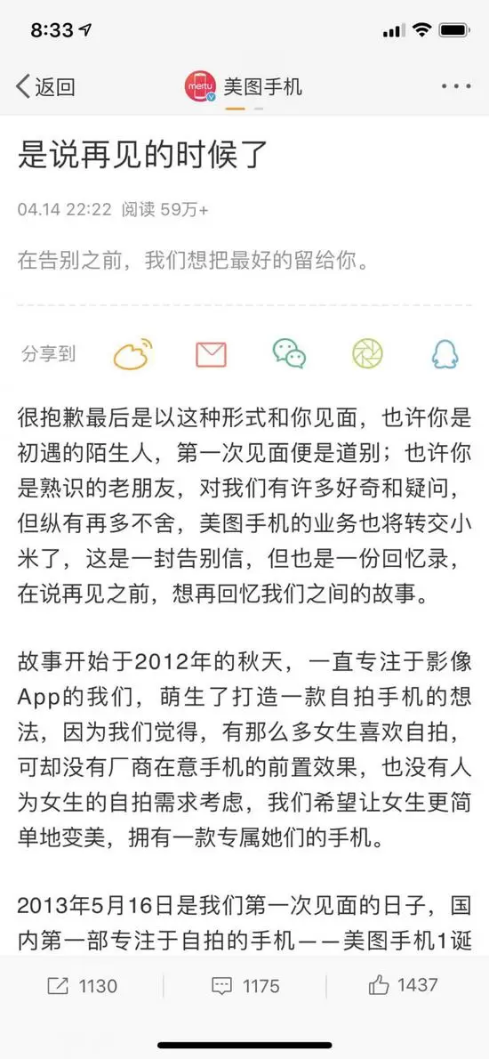 美图正式宣布关闭手机业务 品牌授权给小米