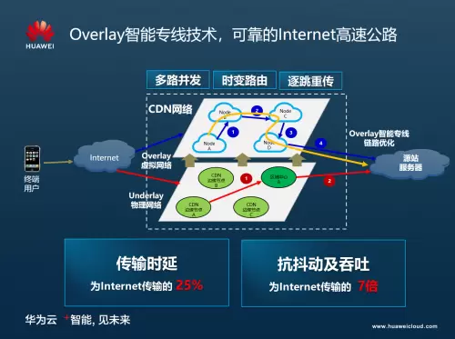 华为CDN以海量节点为基础,构建虚拟网络,Overlay“智能专线”通过利用“网络监控、规律预测、主动控制”等网络传输优化技术,在两点之间的数据传输并不依赖于运营商网络设置的路由策略,可实时探测全网质量,选择最优路径,同时可利用TTP协议建立虚拟隧道,提供逐条重传、多发选收、时变路由等能力,经测试,传输时延较公网可降低25%,抗抖动吞吐能力可提升7倍。