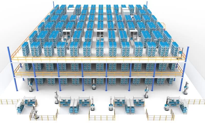 整仓货架为通用轻型隔板货架,无需纸盒,具有实施快,拆装方便,容易搬迁的特点。使用货箱存储商品,每个货位可以存储很满,增大存储容量;同时货箱拣选系统可以和机械臂拣货配合,当机器人到达工位时,将货箱调整到拣货最舒适的高度,提高拣货速度及效率。