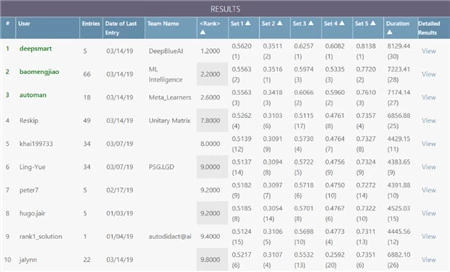 从排行榜来看,本次比赛在五个不同任务数据集上以AUC作为评分指标,五个任务的 Rank(在所有队伍中的排名)值进行平均作为最后的排名依据。位居榜首的DeepBlueAI 团队在Feedback phase的 5 项测试任务中斩获了 4 项第一、1 项第二的成绩。