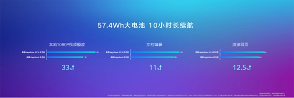 拥有57.4Wh超大容量电池,超长续航10小时。荣耀MagicBook 2019锐龙版可实现本地1080P视频播放10小时/浏览网页9小时/处理文档10小时,可以满足上班族白领和学生对于续航的使用需求,外出办公情况下减少充电需求。不仅如此,荣耀MagicBook 2019锐龙版全新升级指纹识别电源键,用户一键开启可直达桌面,面对需紧急开启使用电脑的情景得心应手。此外,杜比全景声、全尺寸键盘、2*2 MIMO双天线Wi-Fi应有尽有,为影音爱好者、文字工作者等带来更加完美的使用体验。