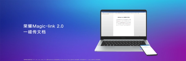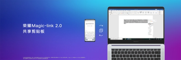 目前,荣耀MagicBook 2019锐龙版支持一碰传图片/视频、一碰传文档,共享剪贴板三大功能。全新的Magic-link2.0魔法互传功能,突破Windows和Android系统壁垒,在两台设备间建立持久链接以及高速的传输通道。即使是在没有数据线和网络的环境下,也能实现跨平台互传,一碰即刻分享,尽享智慧互联。