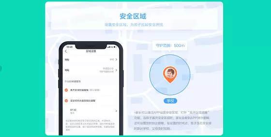 家长可以通过APP设置安全区域,当孩子离开安全区域时,家长会收到APP消息提醒,为孩子拉起安全界限。萤石儿童可视安全手表还支持设置“定时到达提醒”,在设置的时间点,父母能及时知晓孩子是否安全按时到达学校。一键求助,通话白名单等多样化的功能设定也将时刻守护孩子安全。