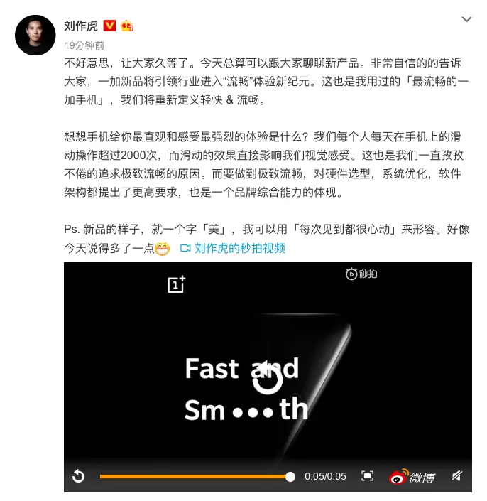 刘作虎首曝一加新品:引领行业进入流畅体验新纪元