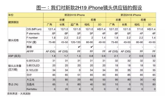 另外,新机的前置镜头也会升级,变成1200万像素(5P镜头),而目前的机型是700万像素+4P镜头,同时新iPhone相机镜头升级,玉晶光将会是最大受益者,其设计、生产良品率优势都强于大立光,订单供货量占据80%。