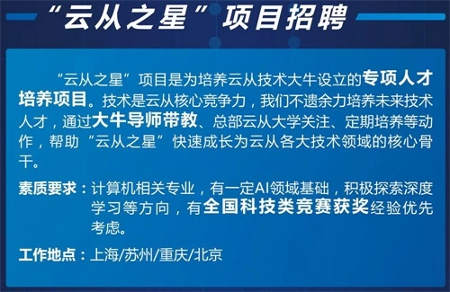 在本次活动上,云从科技还公布了最新的人才招募计划-“云从之星”。技术是云从科技的核心竞争力,该项目由云从大学定期培养,并且有来自微软、苹果、Facebook、中科院等全球顶尖科研机构的大牛导师指导。
