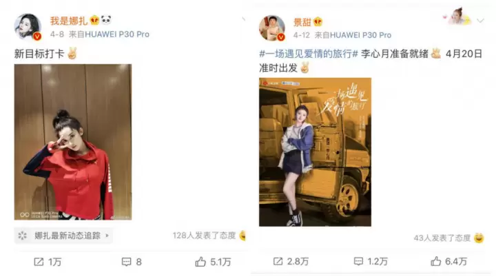 而且除了普通消费者,最近不少女明星也都纷纷换上了华为P30系列产品,如知名女演员古力娜扎和景甜的微博小尾巴就变成了华为P30 Pro。我想正是因为华为对时尚美学的生动诠释,以及对女性时尚的全新定义,才打动了这些一线明星大咖们的心。