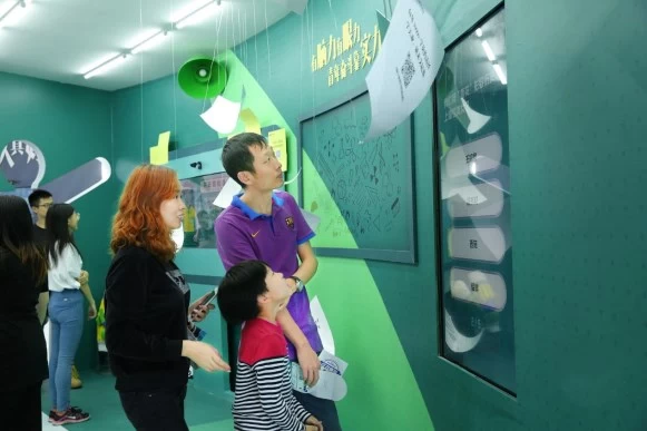 展览期间,参观者在“传达室”自助取号领取一张“办事指南”,持卡去各体验区“办事”获取办人生大事、办喜事、办公事、办好事、办趣事、办开心事等字样的印章,集齐可在“福利发放社”获得一份礼品。