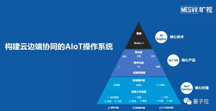 整个金字塔的最底部是旷视真正想交付的核心价值,在特定的场景实现端到端的全价值链的交付。