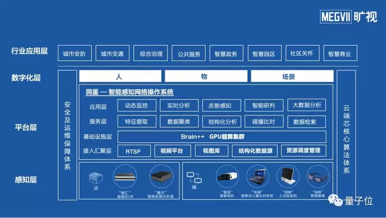 所以整个来讲,旷视的成长解决方案包括了云、边、端和应用四个层面。