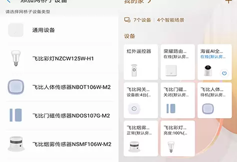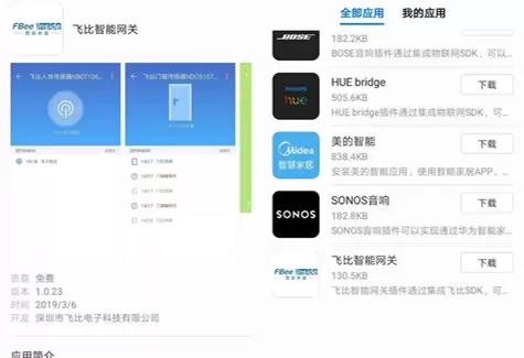 (通过华为智能家居APP可添加飞比智能网关应用)