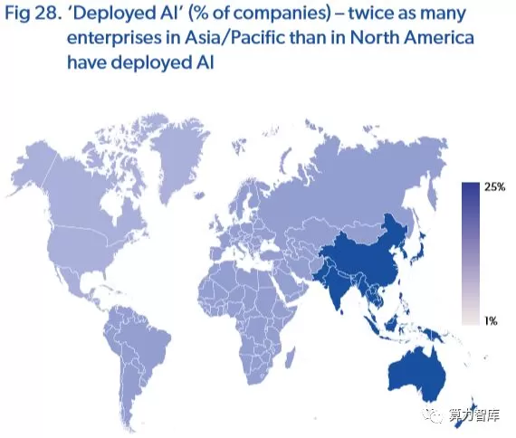 亚太地区的AI应用程度在全球最为领先,而中国又引领AI技术的采用,但人才短缺问题是中国公司面临的一大障碍,美国目前的人才库比中国大50%以上。