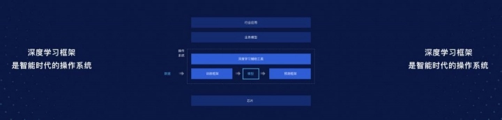 这个体系应该是什么?从深度学习开发必须基于开发框架这个工程化需求来看,从框架到操作系统,是最有可能完成这一目标的产业逻辑。这也是为什么王海峰认为,深度学习框架承上启下,下接芯片、大型计算机系统,上承各种业务模型、行业应用,是智能时代的操作系统。