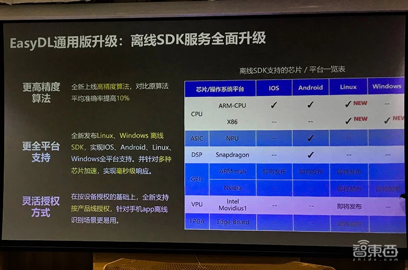 对此,EasyDL通用版将离线SDK服务全面升级,提供更高精度算法、更全平台支持以及灵活的授权方式。