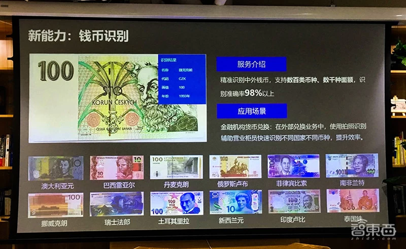 (4)钱币识别:支持数百类币种、数千种面额,识别准确率98%以上。