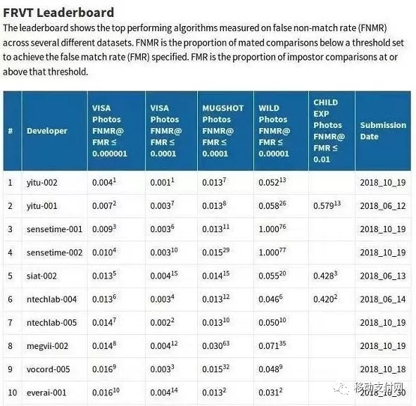 去年11月,美国国家标准与技术研究院公布全球人脸识别算法测试(FRVT)结果,来自中国的企业和研究院包揽了前五名,依图科技的算法占领了第一名第二名,商汤科技的算法摘得第三名和第四名,旷视科技排名第八。